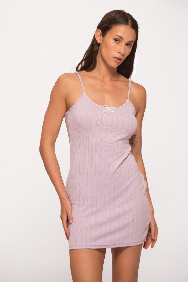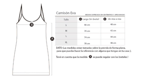 Camisón con breteles regulables del mismo textil, tiene el detalle en escote con elástico rey y moño